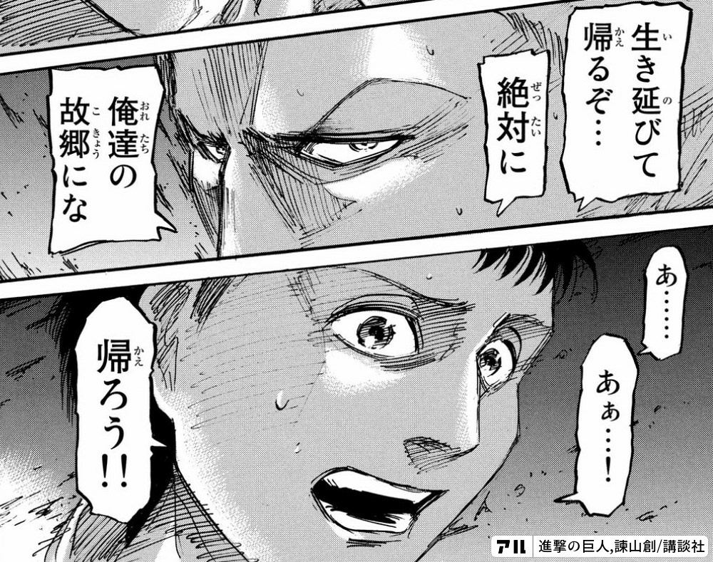 生き延びて帰るぞ 絶対に 俺達の故郷にな あ あぁ 帰ろう 進撃の巨人 アル